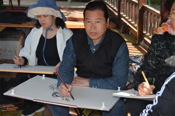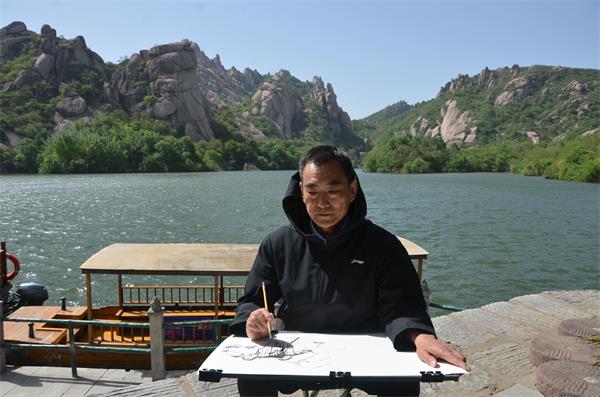 每位画师静心作画,全神贯注、精心施笔。他们把嵖岈山的山势嵯峨、怪石林立、千姿百态、异彩纷呈跃然纸上,融入作品之中。绘就了一批髙质量的艺述作品,好评如潮。
